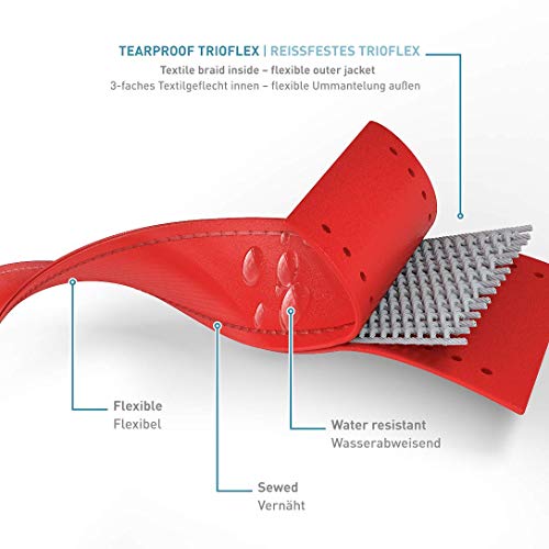 Con la correa de PetTec, tienes una producto duro y cómodo de Trioflex . En tu mano en cualquier clima. Una capa interior textil resistente al desgarro está rodeada por una cubierta exterior flexible y repelente al agua y a la suciedad. Trioflex no sólo es robusto, sino también cómodo de manipular